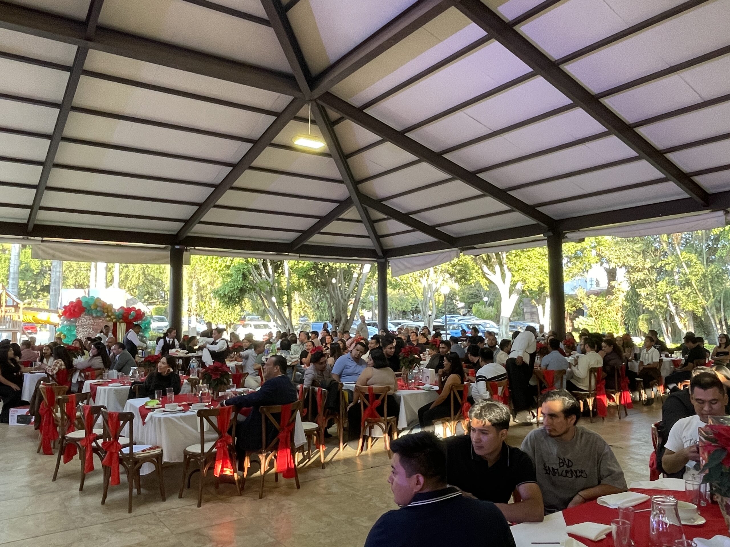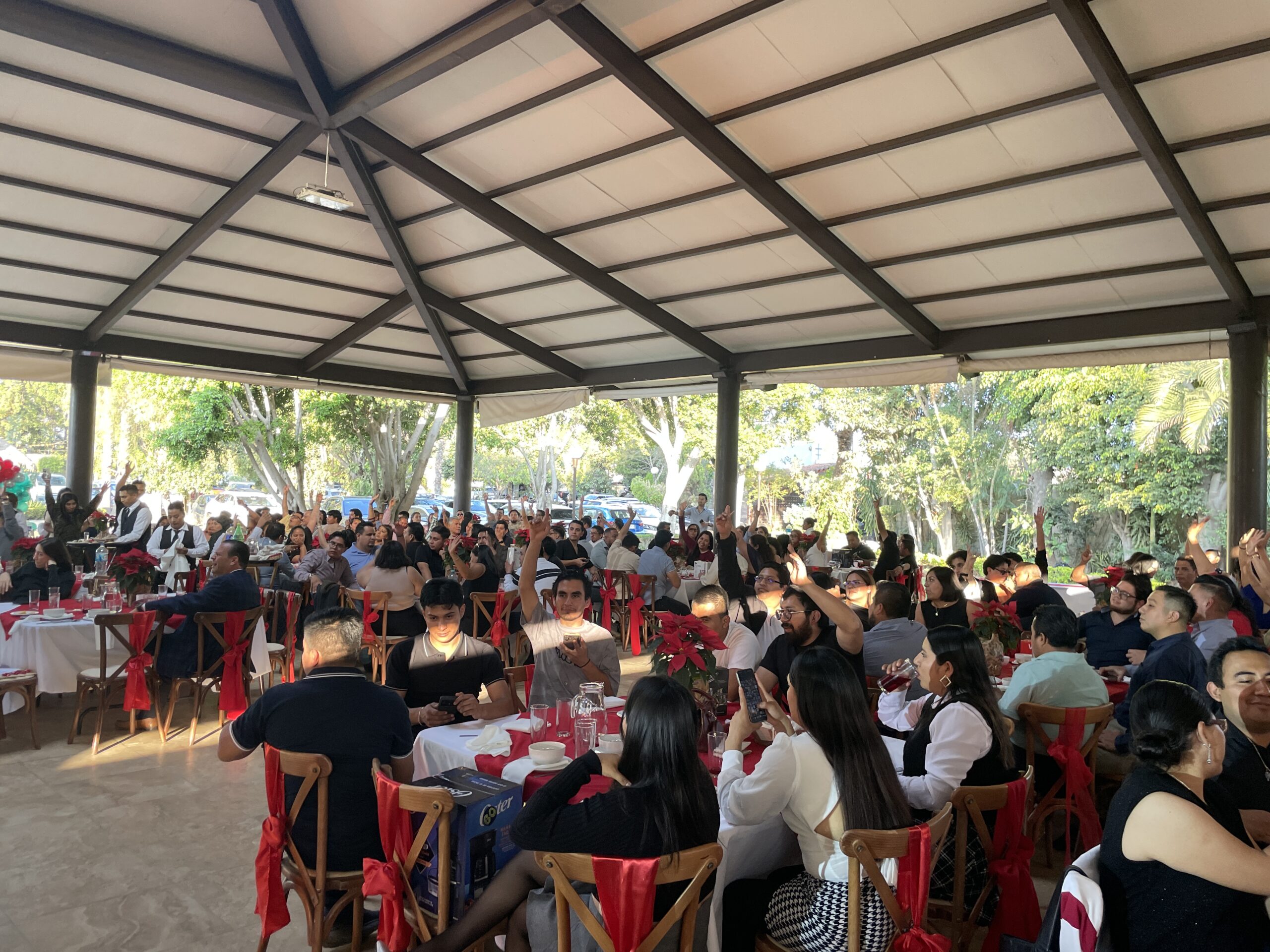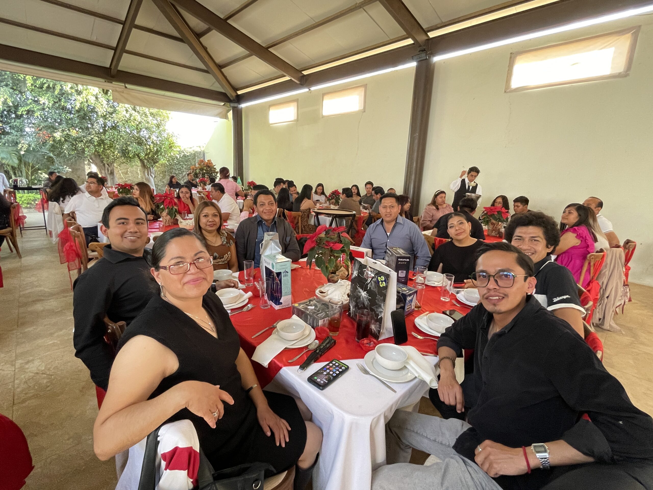 Posteriormente, se dio paso a la comida navideña. Dependiendo de la sede, algunos colaboradores disfrutaron los alimentos por tiempos, mientras que en otras ubicaciones se ofreció un servicio tipo buffet.