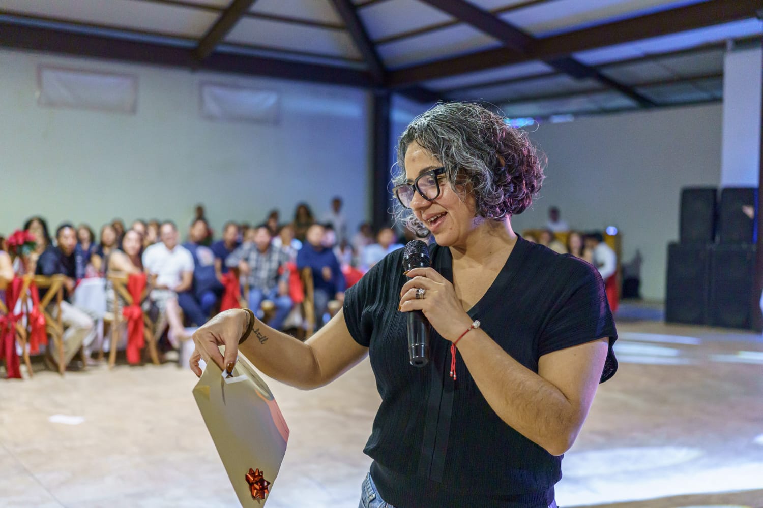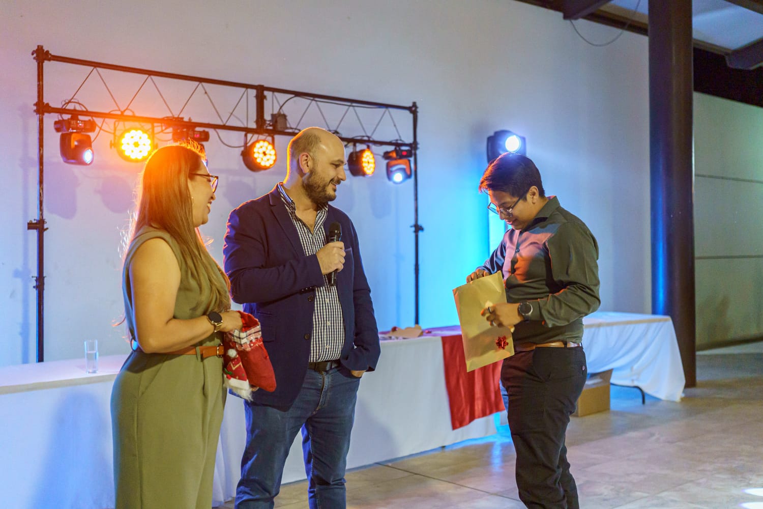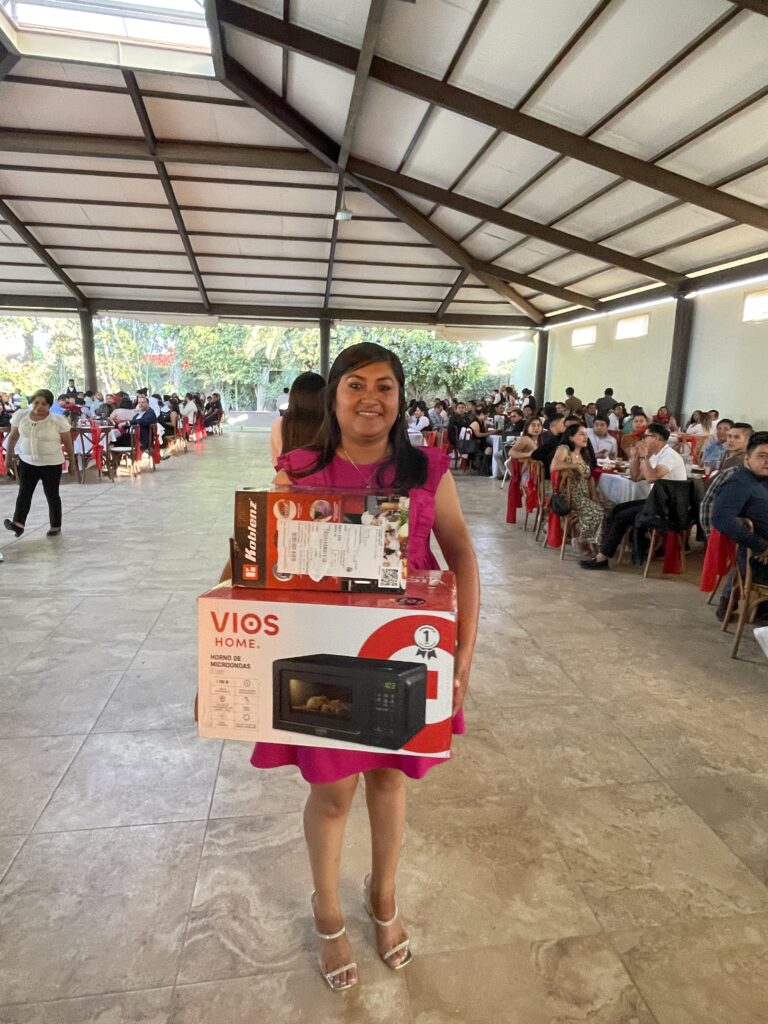 Desde su llegada, los colaboradores fueron recibidos con entusiasmo. En primer lugar, a cada asistente se le asignó un boleto numerado, asegurando que todos tuvieran la oportunidad de participar en las rifas y llevarse un premio a casa.
