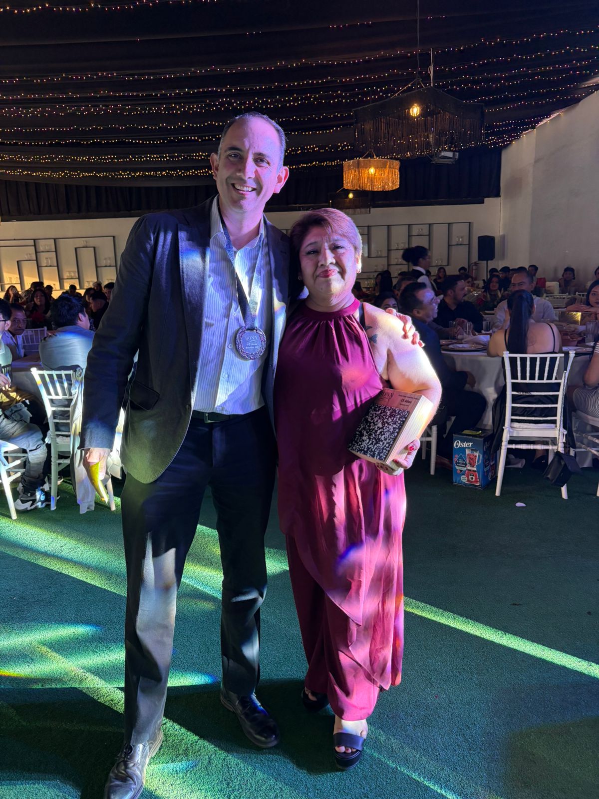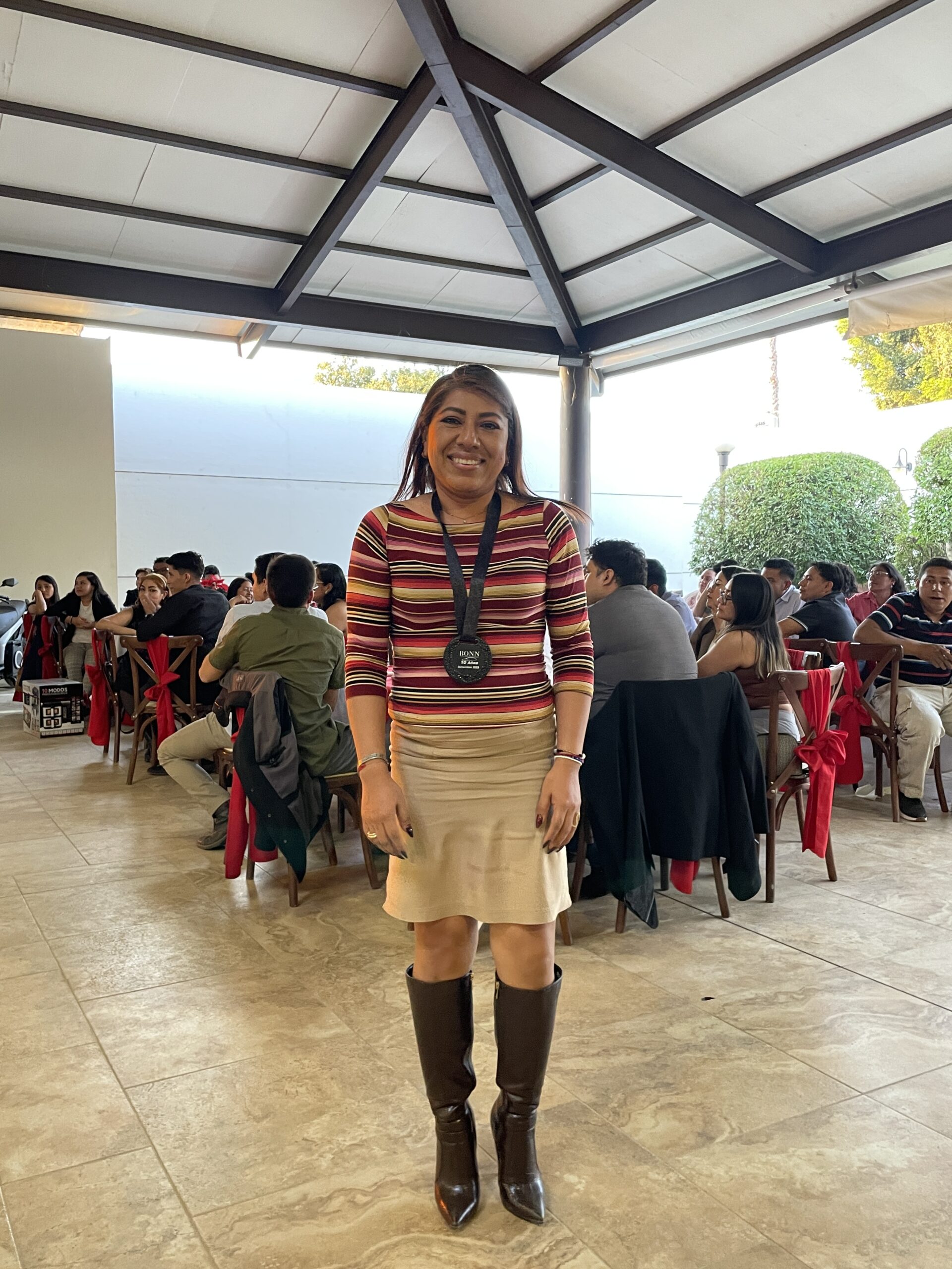 Después de la comida, se llevó a cabo un momento especial de reconocimiento, en el que Grupo Bonn entregó medallas y reconocimientos a los colaboradores que cumplieron 10 y 15 años de trayectoria dentro de la empresa. Este gesto simbólico destacó su compromiso, constancia y lealtad, reafirmando la importancia que tiene cada persona en el crecimiento y consolidación de la organización.