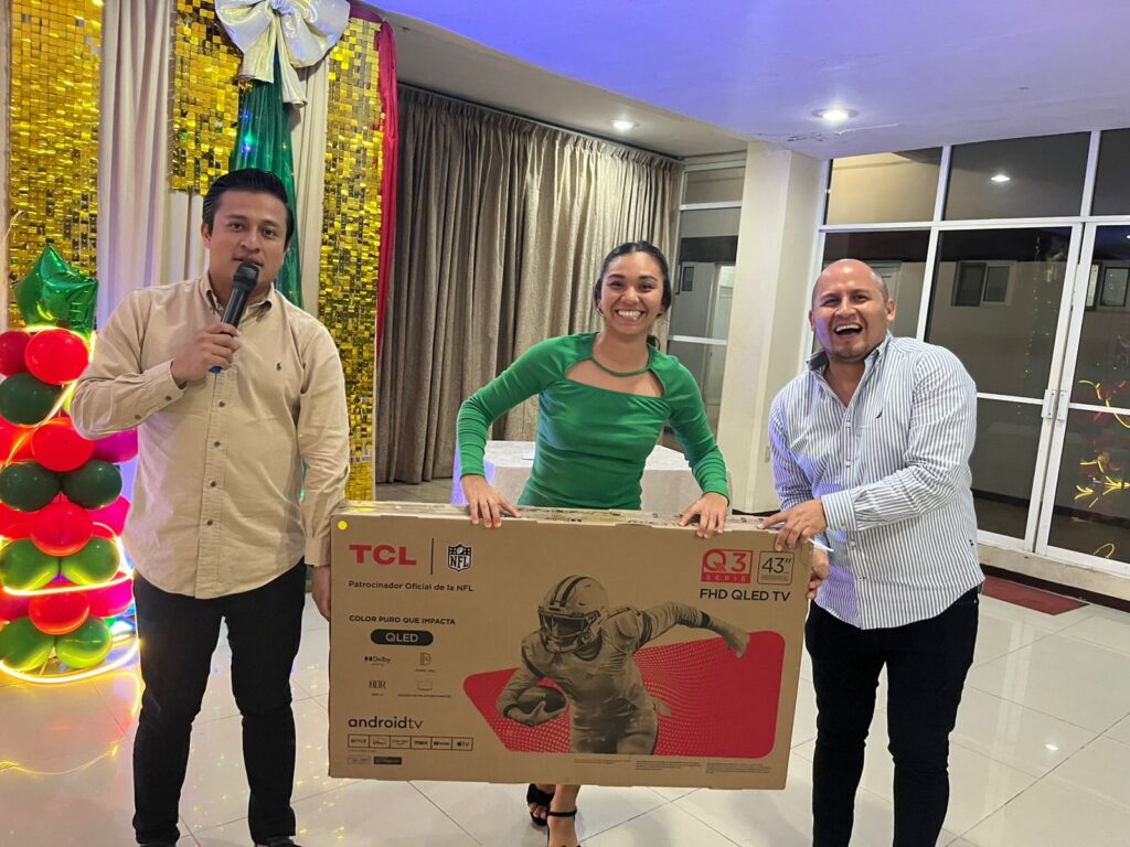 Durante la celebración, se realizó una de las dinámicas más esperadas: la dinámica de la silla. En este momento, los colaboradores revisaron el lugar donde estaban sentados para descubrir si encontraban un ticket premiado, generando risas, emoción y sorpresas.